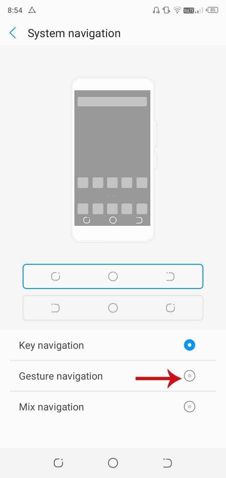 6. अब आपको Gesture Navigation सिलेक्ट करना है जिससे कि आपकी navigation button hide हो जाएगी.